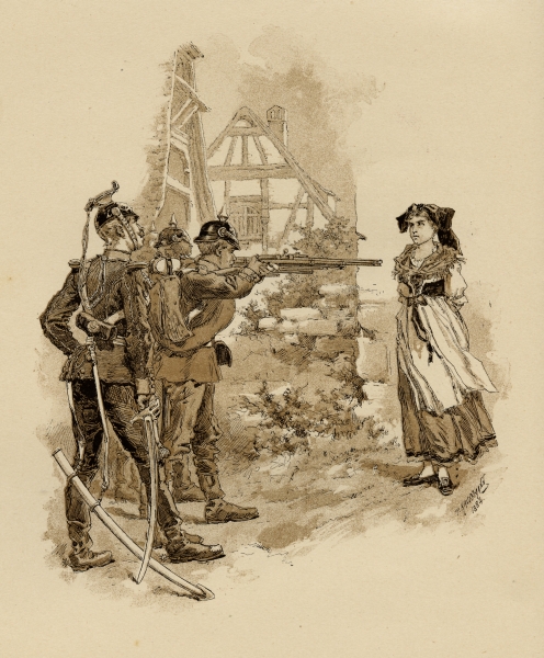 La bande joyeuse accourt follement « Voyez, grand-papa ! voyez, grand'maman ! » Grand-papa sourit, grand'maman embrasse. Était-ce en Lorraine ? était-ce en Alsace ? C'était en pays ami sûrement. VIII