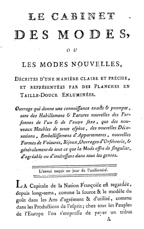 LE CABINET DES MODES, OU LES MODES NOUVELLES, DÉCRITES